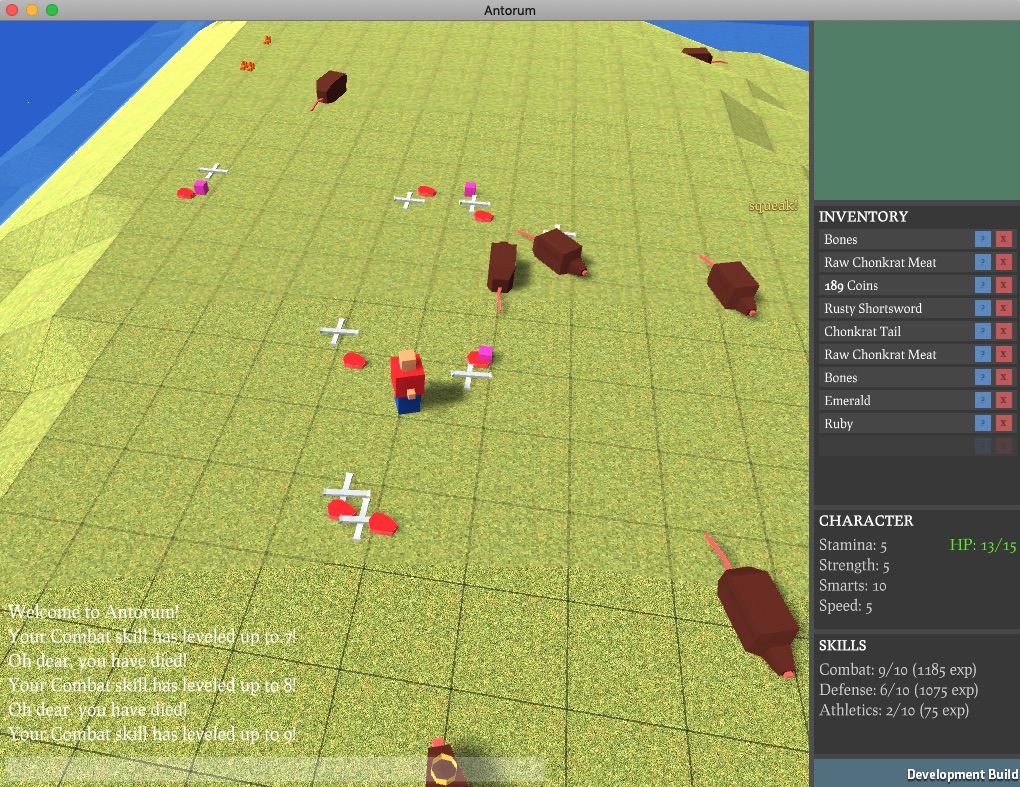 The client didn't change much, so there isn't really anything new to see. Here's a screenshot of the battlefield after I had slain some chonkrats. Those purple cubes you are seeing are just items that I haven't had time to make 3D models for, yet.