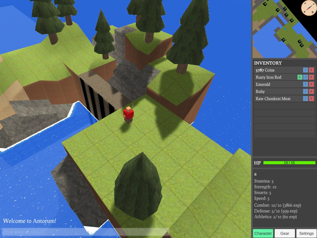 There's a little minimap now. I still have to implement blips (for NPCs, other players, items, etc). Also, trees are a little messed up due to some transparency stuff, I'll have to fix that too. The minimap is my favorite new feature - it really makes the world feel solid, and now that the world is larger it is useful for navigating.