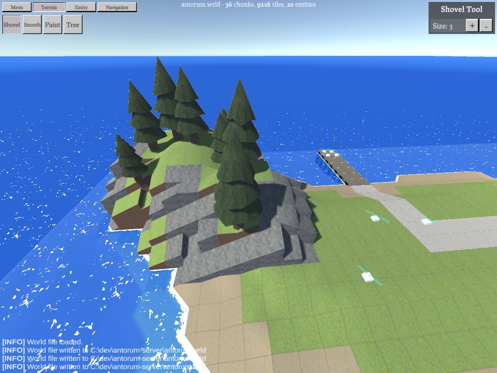 Maps are getting to be way more fun to build. With tile painting, you can make more detailed little mountain bits, bridges, and docks. The map generator will also take care of painting sand on beach areas and underwater (thanks sir!).