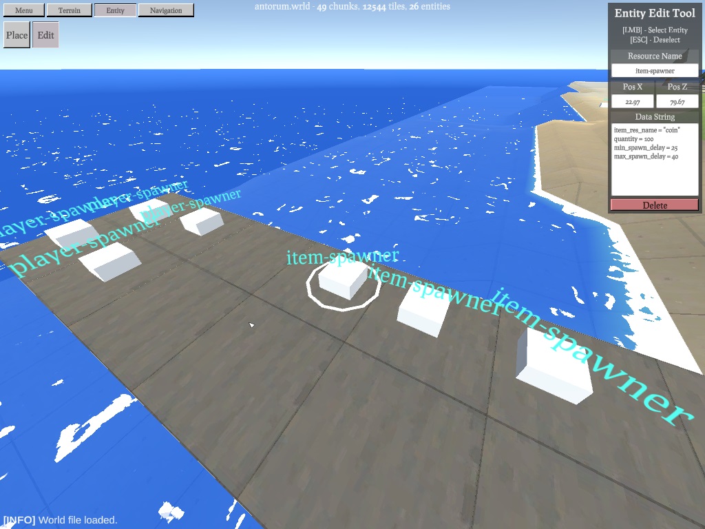 I've been making improvements to entities, to make them more data-driven. Previously, if you placed an entity in the game world and wanted to customize some property on it, you would have to create a new and unique entity file. Obviously I can't build a whole game like that so I decided it was time to go back and work on this stuff.