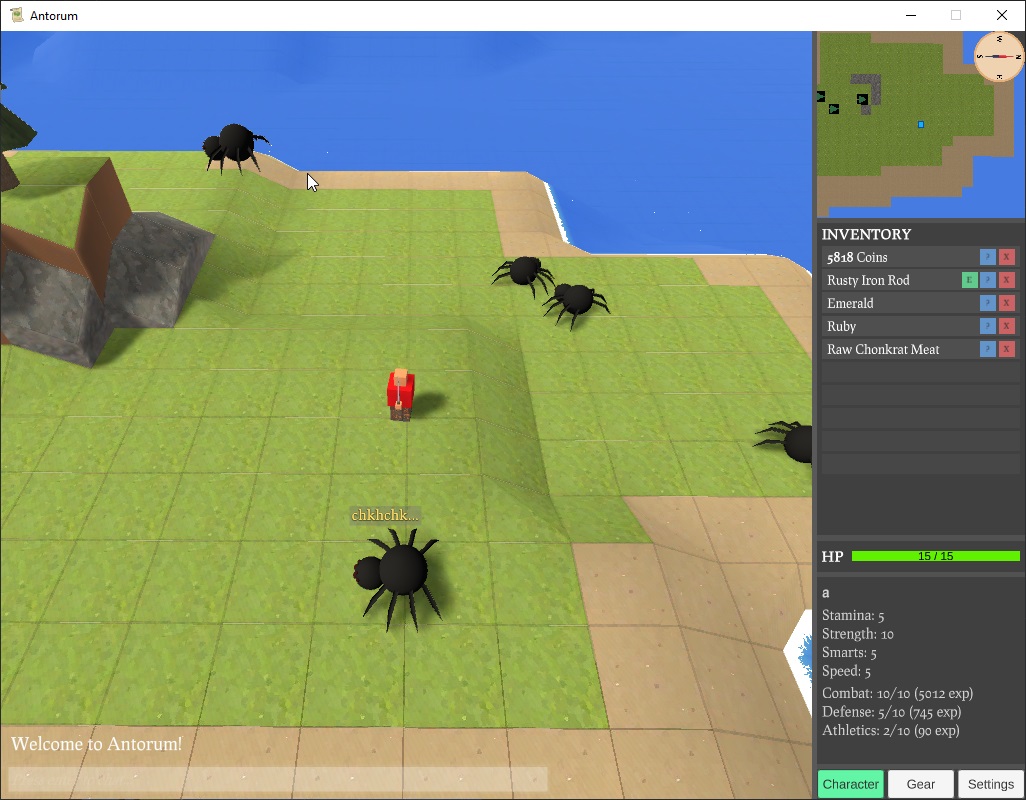 Since there are more than one species inhabiting Antorum now, I also added the ability to define a maximum wander distance for an NPC. This way, packs of them wander around where they were placed, instead of wandering off to the far reaches of the world, never to be seen again. In the future, I'm also planning on making it possible to specify a "home tile type" for NPCs, which they would use as a guide for terrain to stay on when wandering. This would be useful for keeping NPCs like crabs localized to beaches, or even getting friendly NPCs to stick to paths and roads.