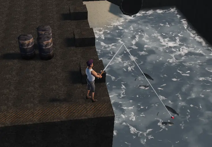 I created an Activity system to handle the various animations and actions that can be performed in the game. An Activity is basically a visual action that the client needs to replicate. It may consist of an animation, sound, or other metadata. For example, the Fishing activity contains data about the fishing bobber position and the type of fishing rod being used. This allows the client to properly override the players equipment and animation state. It also allowed me to remove a bunch of fishing specific packets and code, as all that is now just driven through this more generic system.